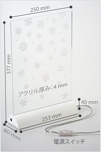 | 材質 | 両面ハードコート加工アクリル、アルミ台座 | |||||||||||||||||||||||||||||||
